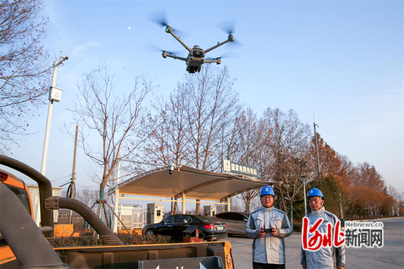 国网正定县供电公司工作人员操作移动式无人机机巢对高速公路充电站配套电网设备进行飞巡。康伟摄