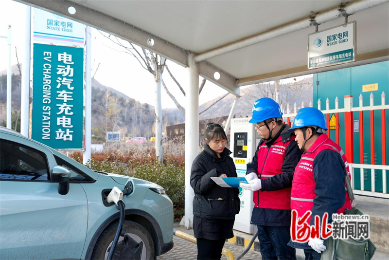 国网平山县供电公司工作人员在西柏坡景区停车场充电站指导车主充电。霍晓娟摄