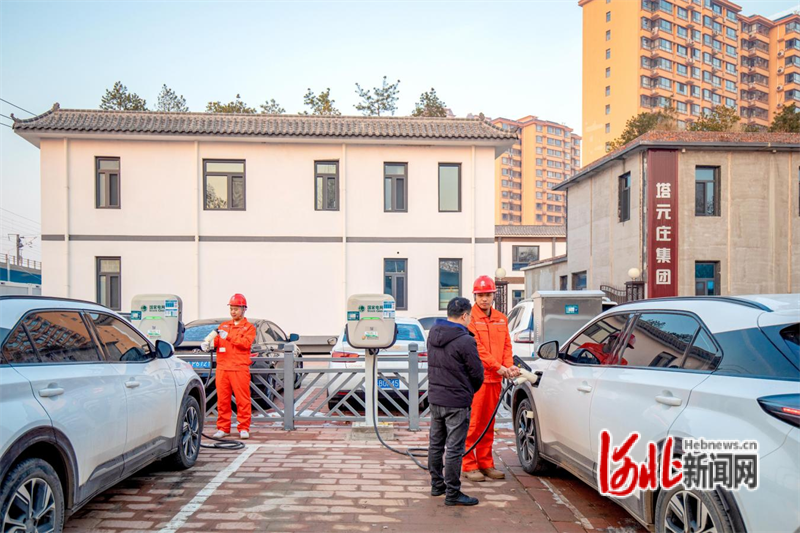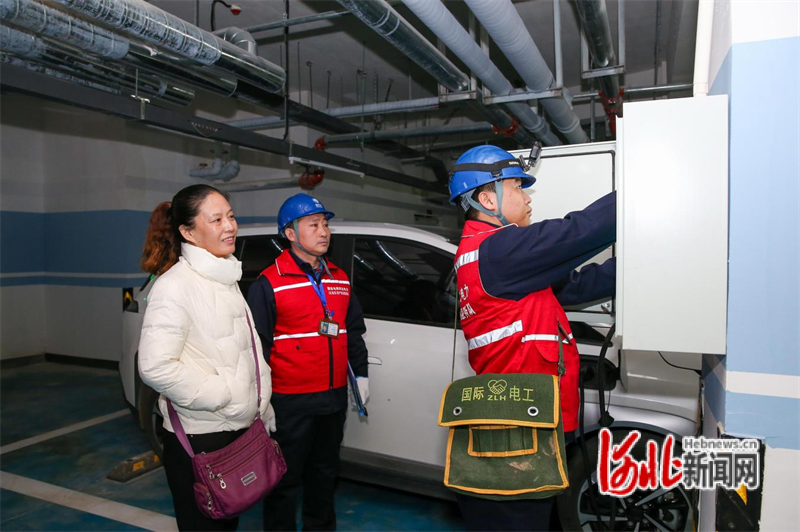 国网石家庄供电公司工作人员为小区新能源车主提供便捷接电服务。康伟摄