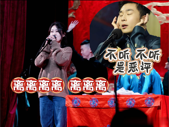 杨九郎、张霄白、张九南三人台上互怼,互揭伤疤还都伤口撒盐,演出结束,就连主持人琪琪都来了个返场,对着张九南唱歌“离离离离 离离离”。