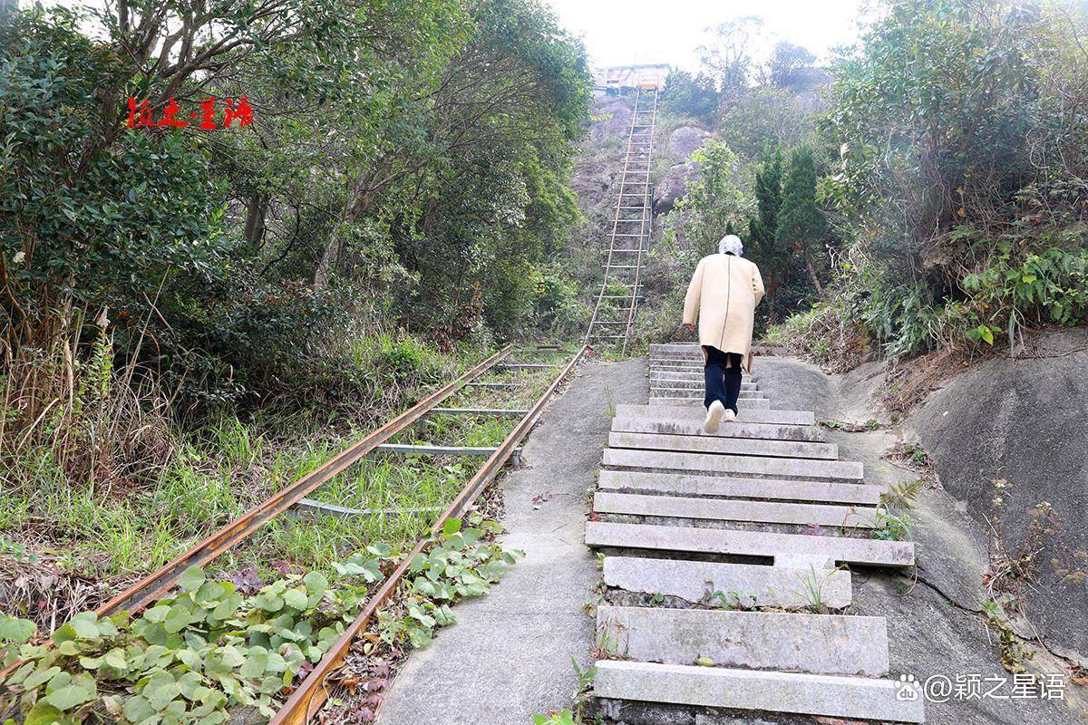 山顶突兀无路,当年建设净悟斋和佛塔所用的建筑材料,只能通过滑道运送上山,现在游客登顶也需要攀登一段天梯才能到达。